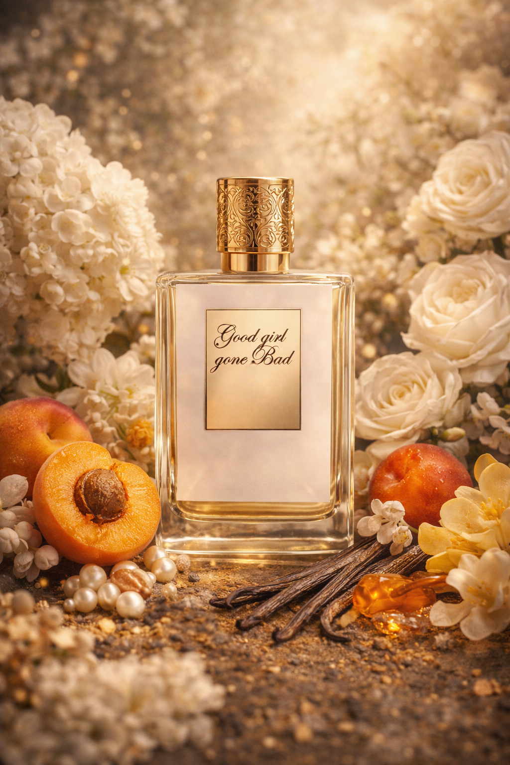 A luminous floral accord with an addictive, sensual twist. It opens bright and airy with orange blossom and osmanthus leading to a heart of jasmine, tuberose, and rose bloom, flowing into a creamy, intoxicating bouquet. As it settles, warm amber and soft woods leave a delicate but provocative trail. Feminine, confident, and effortlessly seductive, this fragrance captures the moment where sweetness turns irresistible.